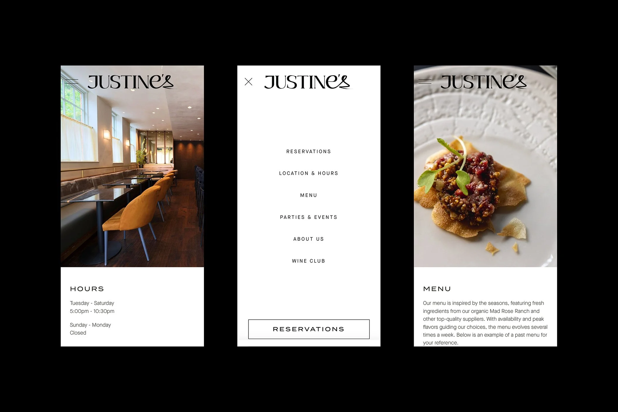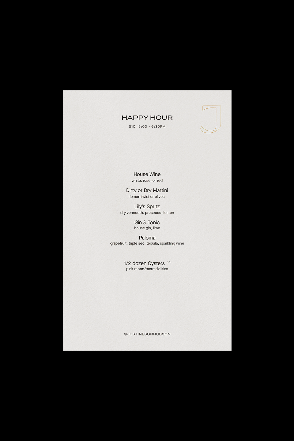 Justine’s on Hudson’s restaurant menu was designed to embody flexibility and elegance, allowing it to seamlessly adapt to a range of elevated dining experiences. The layout emphasizes seasonal offerings that change frequently to reflect the freshest, locally sourced ingredients.