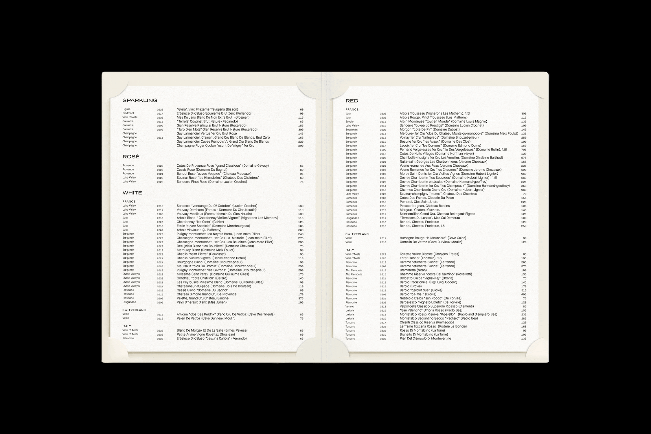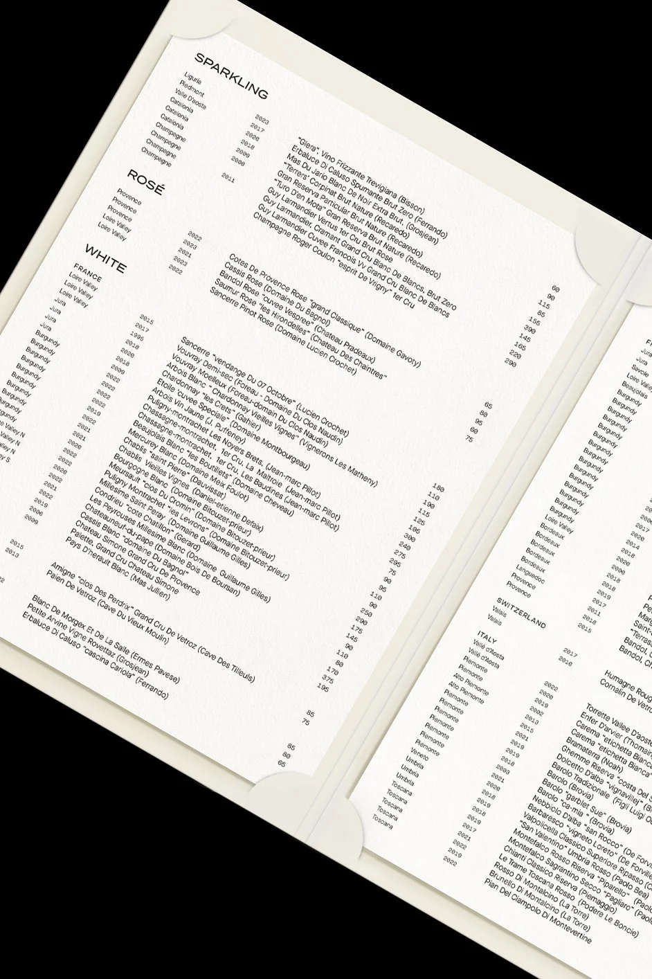Developed as part of the restaurant’s visual identity system, the menu design required both front- and back-end versatility for in-house updates—ensuring consistency in print production while supporting the brand’s commitment to refined, seasonal hospitality.